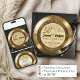 This unique & retro Gold & Black Vinyl Record music theme 50th birthday party round shape invitation with catchy song title quote "This Will Be One For The Record" and fun typography details, features a double-sided solid gold record vibe ("Side A / Side B"), with invitation details on the front, and RSVP details on the back over a vintage black turntable record player. Easily personalize the wording to make it uniquely yours! You may want to edit placement of your wording components further once your add your details - to do so, click the blue "Edit using design tool" button at the bottom of the "Personalize this template" window, navigate to either the front or back side layer, then click on the layer element you would like to change and make it your own! ** Scroll below to check out the full matching design collection + more similar invitation designs to make your 50th birthday party complete! Scroll below to see the collection, or head to my Zazzle storefront and view the collection in it's entirety there. ♥ Custom design/product requests and template questions are always welcome - click the "message" button or email figandlilyco@gmail.com. Design is lovingly created by Fig and Lily Studios, sending blessings and thanks!