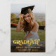 Celebrate that special graduate with this bold, unique and modern template. The words graduate are in oversized retro typography in real gold foil on a black background. The photo appears on the front and all your party details are elegantly placed on the back with "GRAD PARTY" in large retro script in faux gold. Customise this design with your own unique information to create a stunning party invitation.