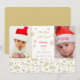 A bottom border of a gold mittens and "Merry Christmas" text pattern leaves room for two of your own photographs on this cute "Best Gift Ever" flat Christmas card. The centre is white for your custom text in gold and red, and a few gold snowflakes that drift down. The back of the card is solid matching gold so that you may hand write a message, if you wish.