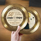 This unique & retro Gold & Black Vinyl Record music theme 50th birthday party round shape invitation with catchy song title quote "This Will Be One For The Record", and fun typography details - featuring a double-sided solid gold record vibe ("Side A / Side B"), with invitation details on the front (Side A), and photo + RSVP details on the back (Side B). It's the perfect unique fiftieth birthday invitation for the music lover in your life! Easily personalise the wording and upload a photo - you may want to edit placement of your wording components further once your add your details - to do so, click the blue "Edit using design tool" button at the bottom of the "Personalise" window, navigate to the "layers" tab in the left hand column of the screen, select the front or back side layer, then click on the layer element you would like to change and make it your own (if you are having trouble with the curved text being centred in the area once you have customised the wording, click on the text box, and adjust the curve setting in the right-hand edit panel - you can adjust further by using partial #'s after the main curve #, for ex: .73 and so on)! ** Scroll below to check out the full matching design collection to make your 50th birthday party complete! ♥ Custom design/product requests and template questions are always welcome - click the "message" button or email direct: fcontact@figandlilyco.com. Design is lovingly created by Fig and Lily Studios, sending blessings and thanks!