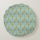 Retro Green and Blue Cute Folksy Floral Pattern Round Cushion