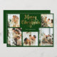 Retro Green and Gold Merry Christmas Family Photo Holiday Card