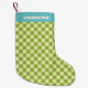 Retro Green Blue Chequerboard Personalised Name Small Christmas Stocking