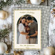 Retro Green Gold Plaid Arch Photo Christmas Happy Holiday Card. Celebrate the season in style with this elegant plaid photo Christmas card featuring a dusty sage green gingham border and a modern arch-shaped photo frame. Personalise it with your favourite family photo,with template texts „Happy Holidays”, family name, and the year. The festive design is highlighted with elegant faux-gold Happy Holidays typography, creating a warm and timeless look. The back showcases a matching sage green gingham pattern for a coordinated, polished finish. A perfect holiday card to share with family and friends.