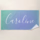 Retro Green and Blue Gradient | Personalised Script Name Beach Towel