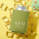 Retro Green & Ivory Monogram Wedding Can Cooler