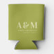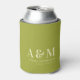 Trendy retro green and ivory wedding can cooler with bold monogram initials and modern typography. Perfect for wedding receptions, bachelorette parties, bridal showers, or engagement celebrations. Keeps drinks cool while adding a personalized touch to your special day. Ideal for guests to take home as a keepsake or to use at the beach, picnic, or backyard party after the event. A stylish and practical wedding favor with a seventies-inspired vibe.