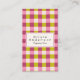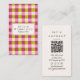 Retro Green Pink Chequered Gingham Girly QR Code Business Card