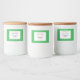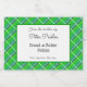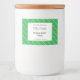 A custom retro canning or food label with handwritten style script and slab letters on a green plaid pattern with small white and blue stripes for pickles, jams or other recipes from your or your small business.