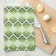 Green tones in a fun geometric pattern with a 70s retro feel.