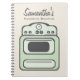 A recipe notebook featuring an illustration of a retro inspired green stove. Personalise with your name in grey.