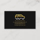 A retro grey and black columnar design is accentuated by a faux gold stripe tab. At the top of the card is a gold memorial car design that houses your business name and a slogan option to publicise your services. ; You can change the caption remarks to the slogan to suit your own service needs. Below the car design, in the black layer, lies your prestigious name, the job title and the contact details in the opposite corner. Lettering here are in faux gold.
