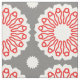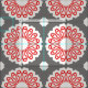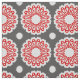 Cute fabric design featuring a seamless pattern made of geometric shapes in red and white on a grey background.