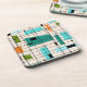 These Retro Grid and Starbursts Hard Plastic Coasters are where vintage style meets modern day. It features a cream coloured background with kitschy, off kilter squares and rectangles in teal, turquoise, This light blue, orange, and avocado green. The whimsical blocks of colour are overlayed are worked into some of the grid intersections. There are also black rectangles with black vertical and horizontal lines forming a grid pattern. Black starburst designs and squares placed sporadically throughout this mid century modern tapestry of colour. Grab your go-go boots and bell-bottoms and enjoy this throwback to the 1960s.
