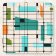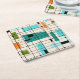 These Retro Grid and Starbursts Paper Coasters are where vintage style meets modern day. It features a cream coloured background with kitschy, off kilter squares and rectangles in teal, turquoise, This light blue, orange, and avocado green. The whimsical blocks of colour are overlayed are worked into some of the grid intersections. There are also black rectangles with black vertical and horizontal lines forming a grid pattern. Black starburst designs and squares placed sporadically throughout this mid century modern tapestry of colour. Grab your go-go boots and bell-bottoms and enjoy this throwback to the 1960s.