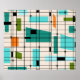 This Retro Grid and Starbursts Poster is where vintage style meets modern day. It features a cream coloured background with kitschy, off kilter squares and rectangles in teal, turquoise, This light blue, orange, and avocado green. The whimsical blocks of colour are overlayed are worked into some of the grid intersections. There are also black rectangles with black vertical and horizontal lines forming a grid pattern. Black starburst designs and squares placed sporadically throughout this mid century modern tapestry of colour. Grab your go-go boots and bell-bottoms and enjoy this throwback to the 1960s.