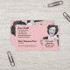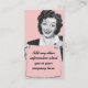 Business cards featuring a vintage 1950s illustration of a grinning woman. Customise them with your own background colour and text. Retro cool!