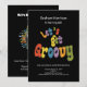 This will get guests excited to come to the 60th birthday party they are now invited to! Unique Retro Let's get Groovy design that's colorful and tasteful with the multi colored red, orange, blue, green, yellow on Black! On the back is a Retro Record Player and some "Cool Vibes" coming from it. The words below it promise great food, great music, and great dancing! Who wouldn't want that!?! Get excited and plan away!
