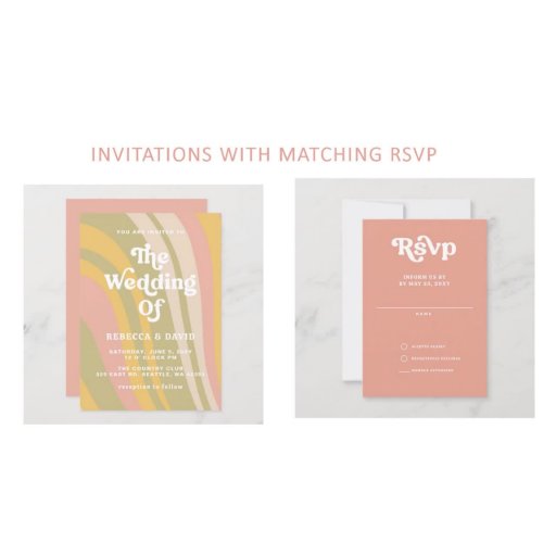 Retro Groovy 70s Green Pink Yellow Wedding SetDesigned by Maria G