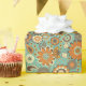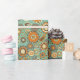 Retro groovy floral wrapping paper with 70s and 60s style in orange, cream and blue trendy colours