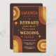 Retro Groovy 70's Rainbow Arch Typography Wedding Invitation