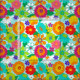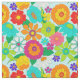 Bold retro floral patterned fabric printed with colorful groovy hippie flowers