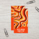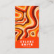 A Vintage retro Psychedelic colourful liquid business card. That features a handmade groovy pattern boho abstract wavy shapes lines .In elegant chic orange and brown and beige . Modern yet it has nostalgic seventies vibes and colours and groovy fonts. With customisable name and profession and QR code.