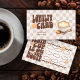 Boost your coffee shop's loyalty program with these stylish retro-inspired loyalty cards. Featuring a charming latte art design and groovy font, these cards are sure to delight your customers. The design includes space for your business name and contact information, ensuring brand consistency. Keep track of customer visits with the designated punch holes and the tenth cup is on the house! These cards are perfect for creating a fun and memorable customer experience.