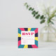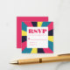 Retro art colourful abstract groovy rainbow personalised wedding RSVP card. Pink blue yellow colour palette. This response card is easily editable. If you need help with the customisation of this product or you need more matching products for this collection kindly message me via Zazzle.