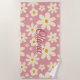 Retro groovy daisy boho desert pink personalised beach towel