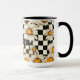 Retro Groovy Daisy Chequerboard Personalised Name Tea Coffee Mug features a groovy daisy pattern on a black and white chequerboard pattern background with your custom text or personalised name in the centre. Perfect as a gift for family and friends for Christmas, birthday, holidays, Mother's day, work colleagues and more. Created by ©Evco Studio www.zazzle.com/store/evcostudio