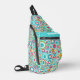 This stylish sling bag features an all-over funky retro dot pattern in groovy colours and your name on the top of the front pocket. Three zippered compartments can easily store your keys, wallet, phone, camera, and plenty more. Wear it as a crossbody or over one shoulder, and attach the adjustable strap to a durable D-ring on the side of your choice. Made of polyester poplin, the bag is fully lined and measures 13.5" x 9". Exterior front pocket is 6.5" deep x 5.5" wide, the interior zippered pocket is 4.5" x 4.5" with a compartment organiser, back zipper pocket is 6" wide x 5.5" deep". Comes with a rugged adjustable 27"-38" waist/crossbody strap with a plastic swivel connector. (Spot clean/dry clean only.) Create for yourself or give as a gift. MATCHING items in our travel collection.