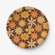 This is retro 70s vintage groovy floral pattern in orange and yellow over dark background. It's great looking paper plate