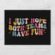 I Just Hope Both Teams Have Fun shirt with funny sayings slogan statement for guys,ladies,children. Wear matching sports fan clothing tops to a basketball, baseball, football game, team sports event.