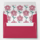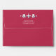 Retro groovy initials pviva magenta and teal wedding envelope. The outside of the envelope is of viva magenta colour with your initials and address on the flap. The inside includes a floral pattern in magenta and teal.