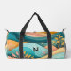 Retro Groovy Landscape Stylish Monogrammed Duffle Bag