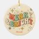 Retro Groovy Merry & Bright Christmas Ceramic Tree Decoration