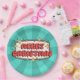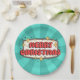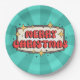 Retro groovy merry christmas text paper plate