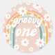 Retro Groovy One Boho First Birthday Classic Round Sticker