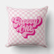 Retro Groovy One Pink and White Check Cushion