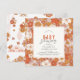 This groovy girl baby shower invitation features a pink background with retro floral patterns in orange and brown. The reverse side features a white background with floral and rainbow patterns. Personalise it for your needs. You can find matching products at my store.