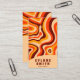 A Vintage retro Psychedelic colourful liquid business card. That features a handmade groovy pattern boho abstract wavy shapes lines .In elegant chic orange and brown and beige . Modern yet it has nostalgic seventies vibes and colours and groovy fonts. With customisable name and profession and QR code.