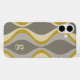 A mod patterned device case with a place for a simple monogram. The taupe, grey and gold design has a groovy organic wave pattern. A minimal look in subtle colours with a simple serif font for a monogram.