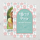 This invitation is inspired by the funky vibes of the 70s, with a delightful combination of pink and aqua colours. The centerpiece of the invitation is an aqua arch that beautifully frames your personalised text. Behind the arch, a charming pattern of retro flowers in pink and aqua blue adds a playful and stylish element. The text "Grad party" is prominently displayed in a bold retro font, adding a touch of personality. On the back of the invitation, you' will find a photo of the graduate within the arch, creating a sentimental and memorable keepsake. The same floral pattern continues on the back, tying the whole design together. Get ready to groove and celebrate this special milestone in style!
