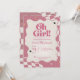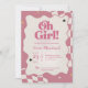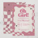 Retro Groovy Pink Checkered Oh Girl Baby Shower Invitation