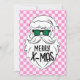 Retro Groovy Pink Checkered Santa Claus Christmas Holiday Card