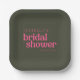 Custom Minimalist Retro Groovy Pink Green Bridal Shower Paper Plates