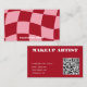 Retro Groovy Pink & Red Abstract Makeup Artist Business Card .