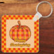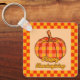 Retro Groovy Plaid Pumpkin Chequered Thanksgiving Key Ring