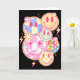 Retro Groovy Smile Face Flower Happy Face Checkere Card